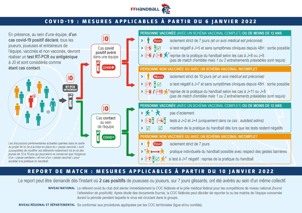 Également, veuillez trouver ci-joint le protocole COVID pour les personnes positives / cas contacts. Il est de votre responsabilité de respecter les règles et prévenir les encadrants.