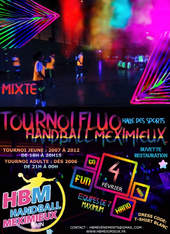 Le HB Meximieux organise son tournoi Hand'Fluo le Vendredi 4 Février 2022 à la Halle des Sports de Meximieux.